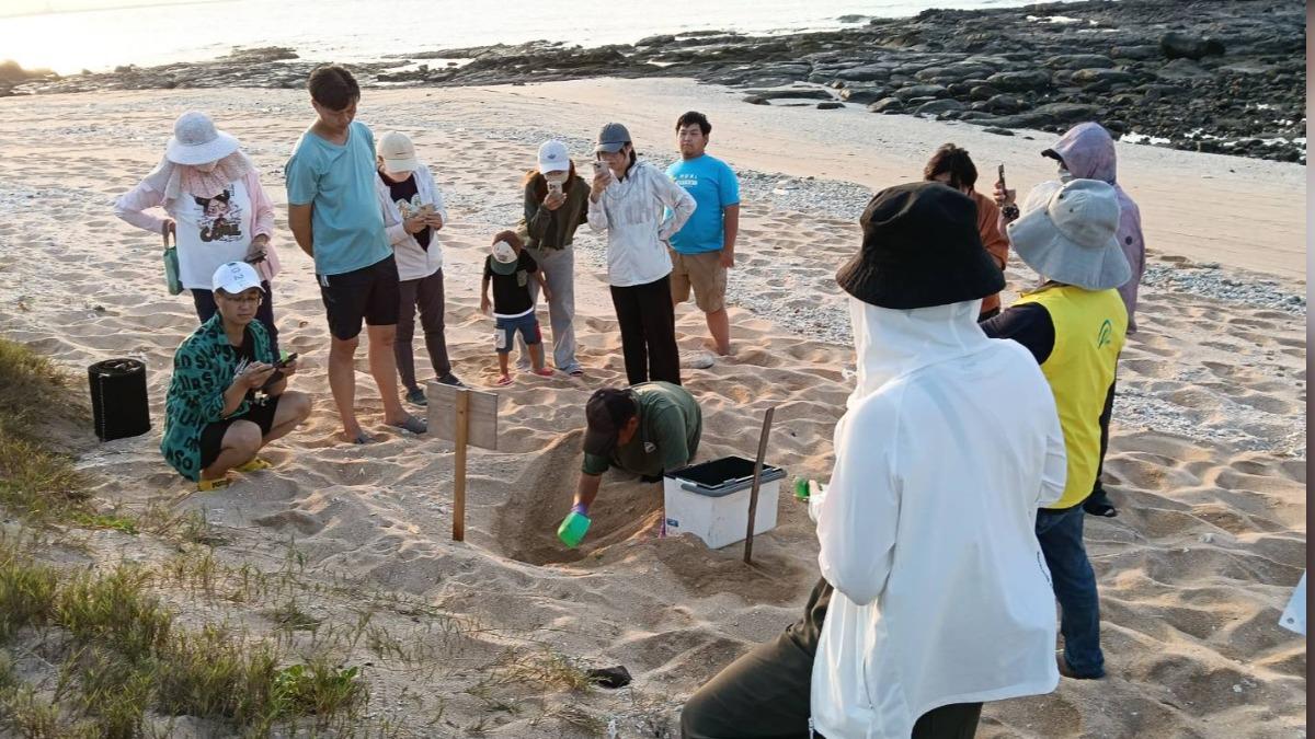 Storm-driven waves severely damaged local terrain and disrupted critical hatching conditions for the endangered green turtle species. Officials relocated 15 weaker hatchlings to the Wangan Green Turtle Tourism and Conservation Center (望安綠蠵龜館) Tuesday (Oct. 8) for specialized veterinary care and monitoring. Local innkeepers witnessed the baby turtles struggling to emerge from their protective shells, describing the natural hatching process as truly miraculous.