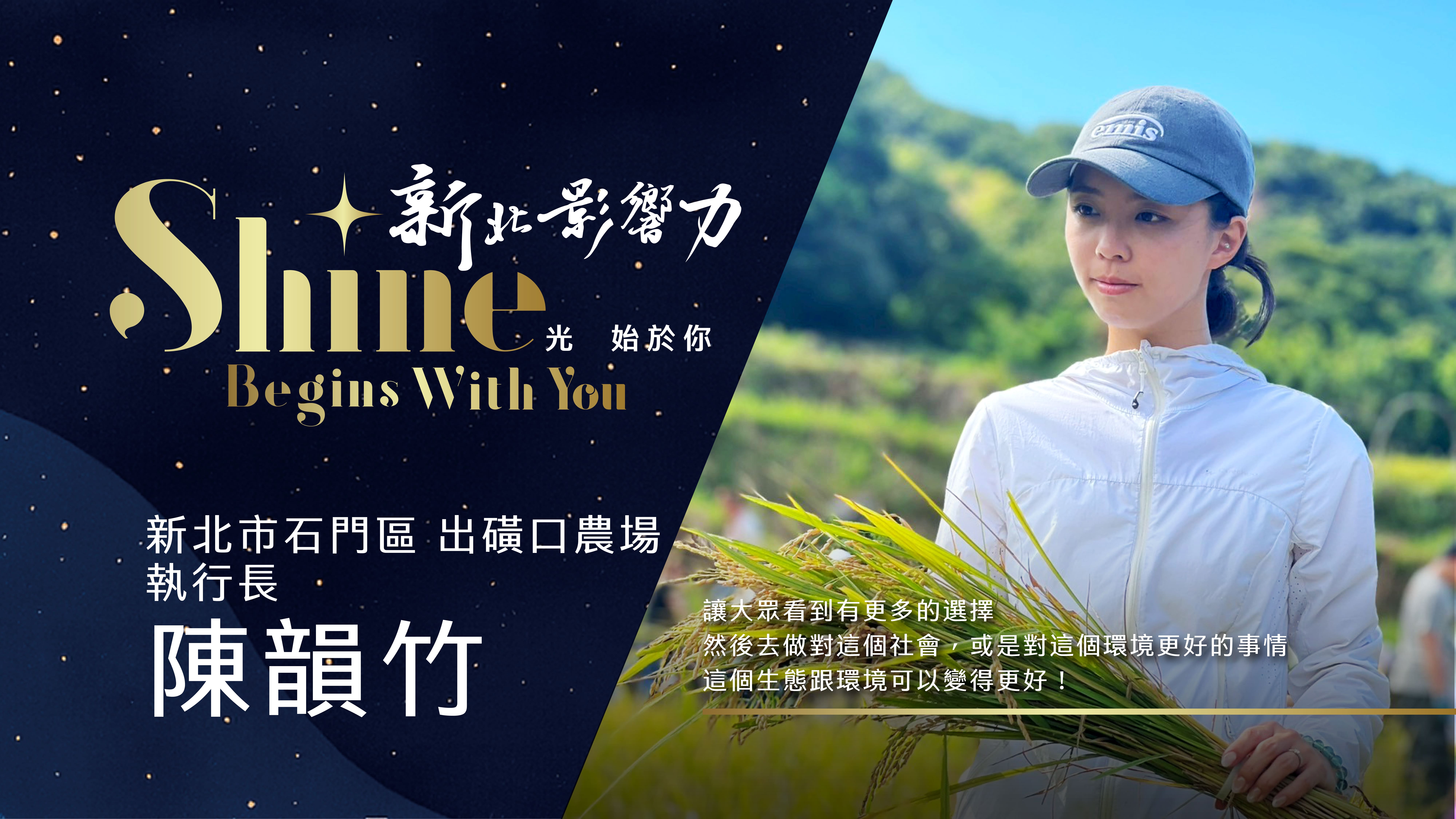 在快速都市化的浪潮下,許多土地記憶正逐漸消失,但仍有人選擇逆風而行,用青春與專業守護土地。返鄉的陳韻竹,將行銷思維與對家鄉的情感結合,讓新北石門的百年水梯田,從原本的祕境,轉變為承載文化、教育與希望的場域,她的故事,也是現代青農尋找自我與守護土地的縮影。