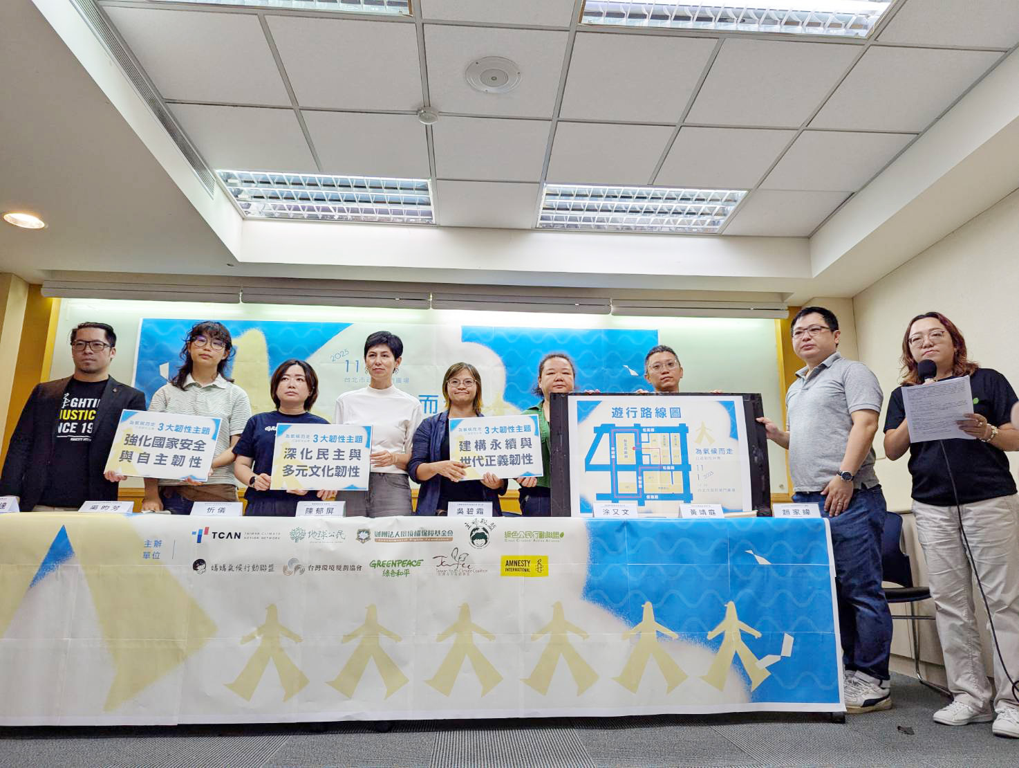 環團今天在遊行開跑記者會中表示,3大韌性主題細分為11項訴求,包含強化非核減碳目標、守護升溫不超過攝氏1.5度;落實國土規劃與協作,建構公平綠能與氣候韌性;共同保護、修復及經營生態系統與生物多樣性;保障青年與未來世代的司法救濟及氣候決策參與權;落實污染者付費,促進產業低碳競爭力。