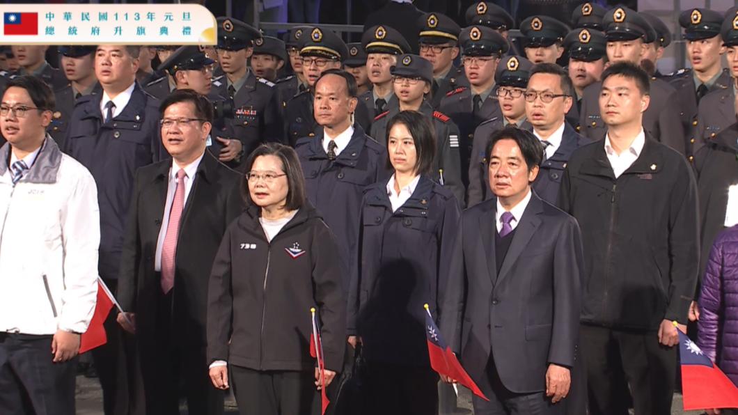 元旦升旗典禮由國際青年商會中華民國總會主辦,今年活動主題為「活力台灣 世代永續A Vibrant Taiwan, A Sustainable Future」。蔡總統、賴副總統手持國旗在總統府秘書長林佳龍等人陪同下進場,與會者包括行政院長陳建仁、立法院長游錫堃、台北市長蔣萬安等人。